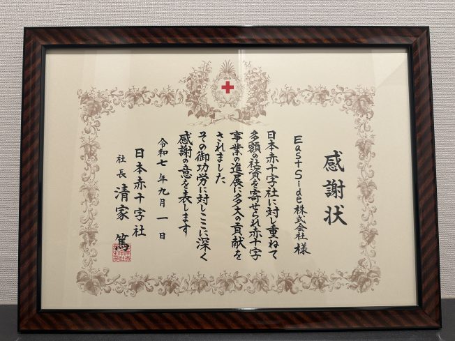 当社はこのたび、日本赤十字社より「社長感謝状」を授与されました。